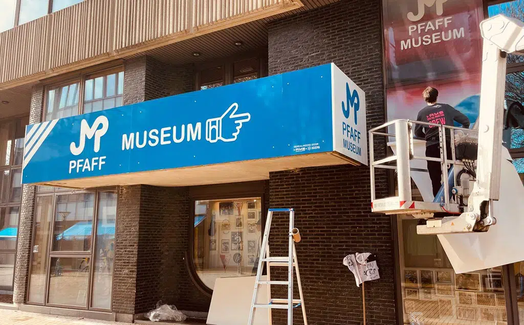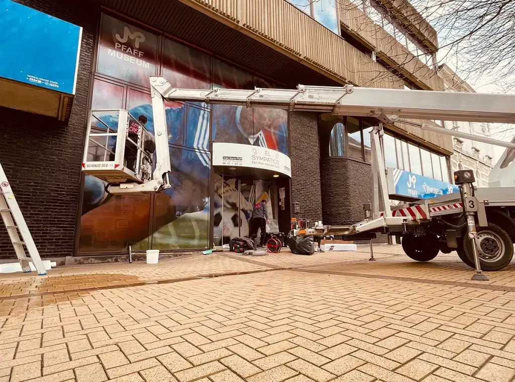 Wat volgde, was pure AMS-magie. Binnen een mum van tijd werd de gevel omgetoverd tot een parel voor het oog. Een entree die niet alleen indruk maakt, maar ook recht doet aan de imposante collectie binnenin. Want laten we eerlijk zijn: wat Jean-Marie Pfaff in zijn carrière heeft bereikt en verzameld, is ronduit indrukwekkend. Elk item, elke trofee en elke foto vertelt een stukje voetbalgeschiedenis.