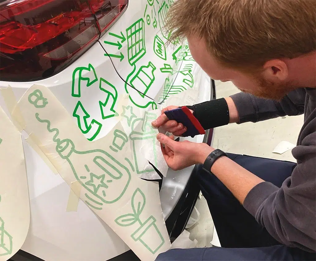 Kleefletters zijn gesneden stickers uit vinylfolie die rechtstreeks op een oppervlak worden gekleefd, zoals voertuigen, ramen of muren.