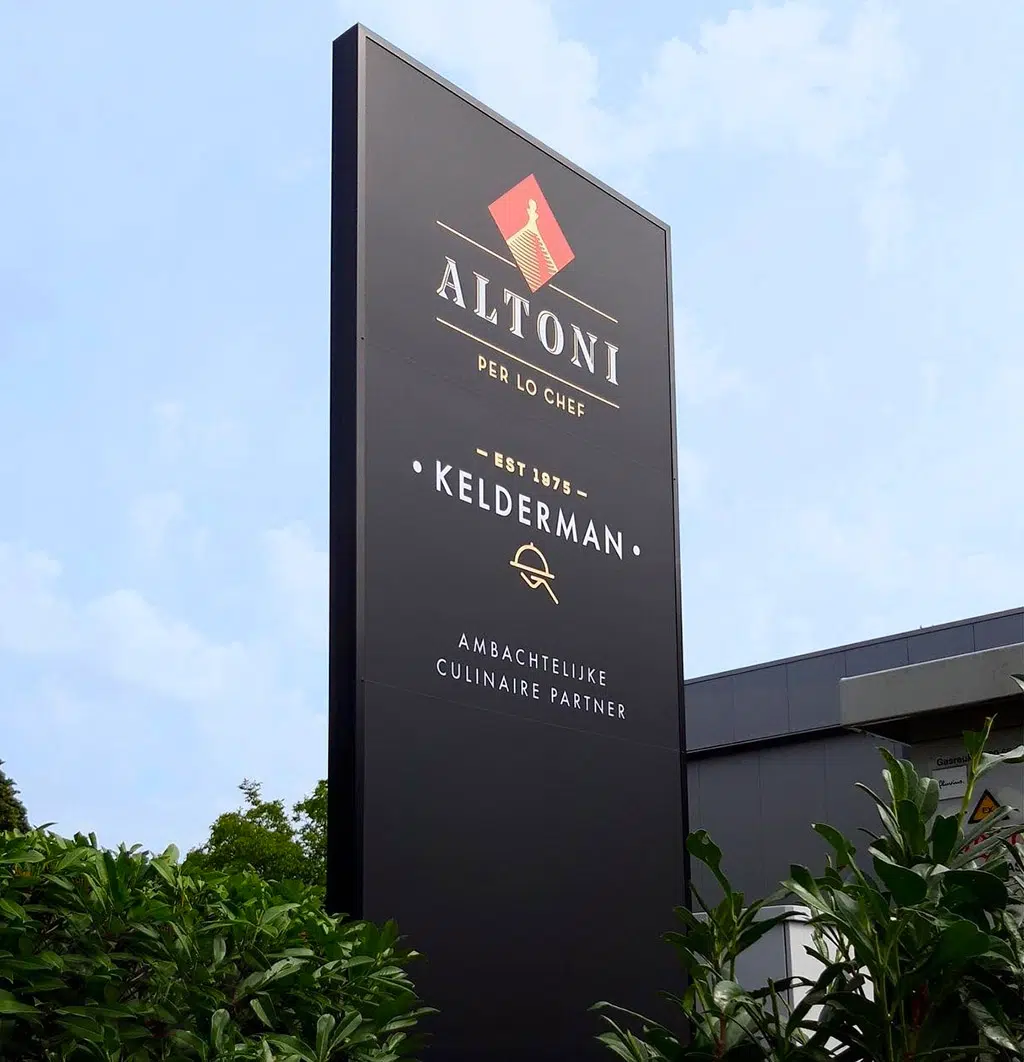 Een totemzuil is doorgaans slanker en moderner van vorm, en wordt vaak gebruikt als elegante en opvallende bedrijfsidentificatie.
